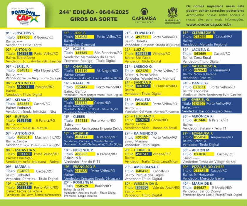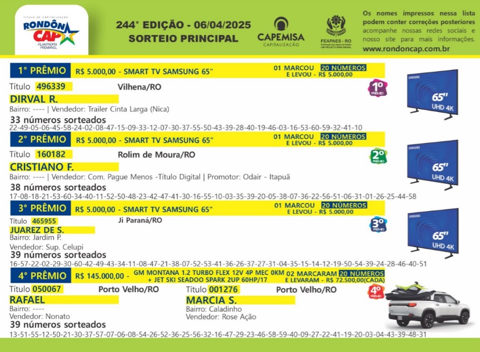 E ainda tem três motos Honda POP e 40 prêmios de 500 reais.