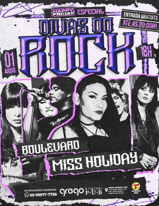 E para completar o clima, música ao vivo para embalar sua noite com o melhor do rock and roll. De apresentação musical essa semana, banda Miss Holiday com especial divas do rock e banda Boulevard no pós show.