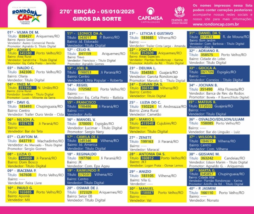 São dezenas de ganhadores em Rondônia e centenas de famílias beneficiadas nas APAES do Estado, através da Federação Estadual das Apaes, a cada domingo.