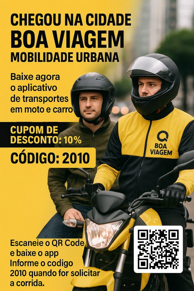 Chegou o novo jeito de andar por Porto Velho! O app Boa Viagem Mobilidade Urbana já está disponível e vai transformar a forma como você se locomove pela cidade. Com ele, você chama moto ou carro em poucos segundos, com rapidez, segurança e preço que cabe no bolso!