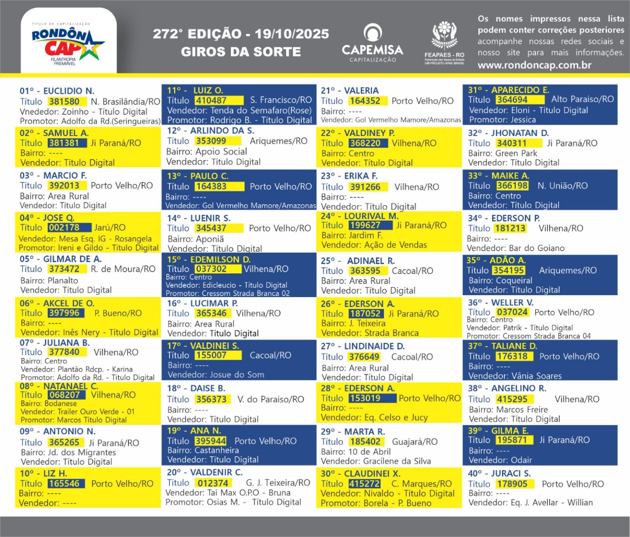 são 110 mil em prêmios e o Titulo só 10 reais. Compre o seu RondonCAP,