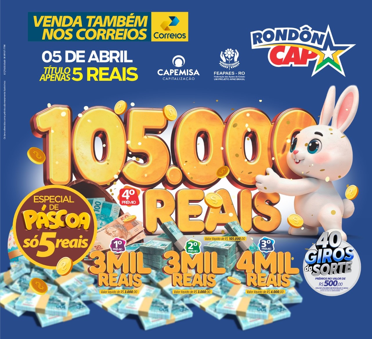 PÁSCOA: RondonCAP com 105 mil no 4° prêmio e o Titulo só 5 reais