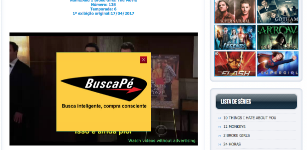 Reprodução de anúncio em site de download ilegal de filmes e séries