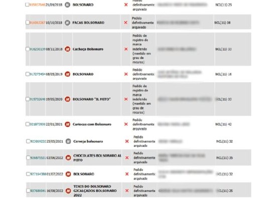 Inpi recusou registro de marca de pessoas e empresas que não comprovaram ligação e autorização do casal Bolsonaro para uso do nome Bolsonaro em marcas de produtos