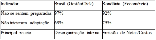 O estudo local traz dados ainda mais sensíveis sobre a percepção do empresariado rondoniense: 75% ainda não iniciaram esforços de adaptação, 73% apontam a nova forma de emissão de notas fiscais como a maior preocupação e. 47% admitem que, embora saibam que haverá impacto, não conseguem avaliar como ele ocorrerá.