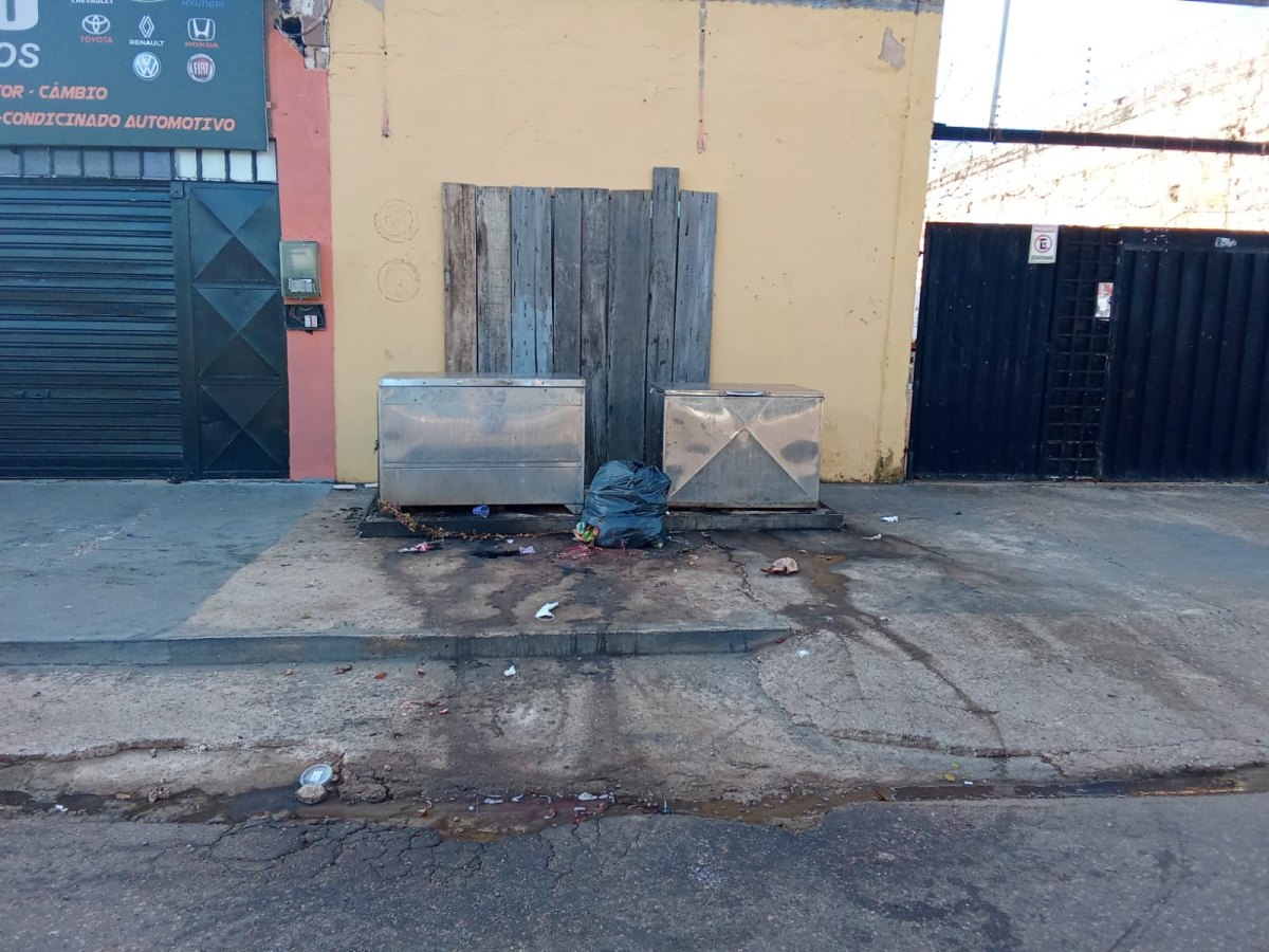 A lanchonete descarta os resíduos de alimentos e de serviço em lixeiras de metal distantes do salão de clientes. O Caroço fica localizado na altura do número 3211, mas descarta na altura do número 3132, em uma área a quase uma quadra de distância que também é de propriedade do estabelecimento. Apesar disso, o chorume escorre pelas calçadas e o fedor está invadindo outros empreendimentos e casas da região.