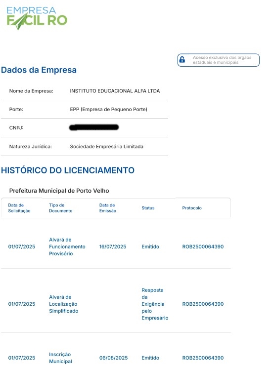 De acordo com documentos oficiais e informações verificadas obtidos pelo Rondoniaovivo, a instituição não possui em seu CNPJ nem em seus atos constitutivos qualquer previsão para as atividades de creche ou pré-escola.