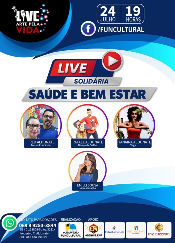 A transmissão será por meio da página do Facebook da Funcultural. Informações sobre as doações através do telefone: (69) 9.9253-3844.
