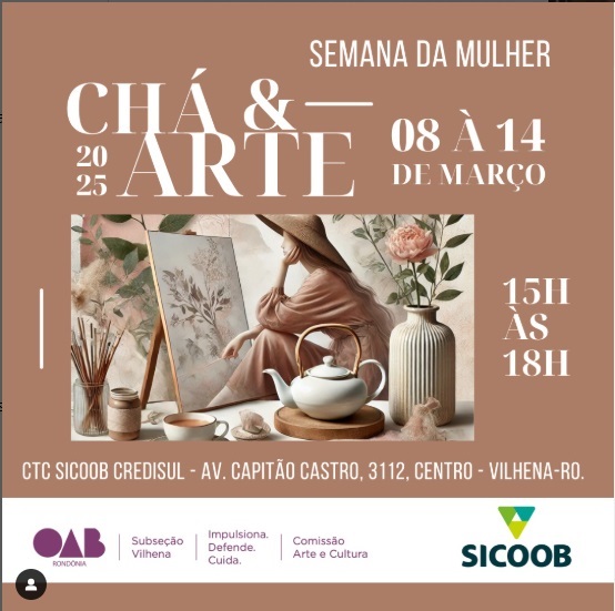 O evento é promovido pela Comissão de Arte e Cultura da OAB Vilhena e o Sicoob Credisul. A iniciativa busca valorizar e inspirar o público feminino por meio de atividades culturais e momentos de conexão.