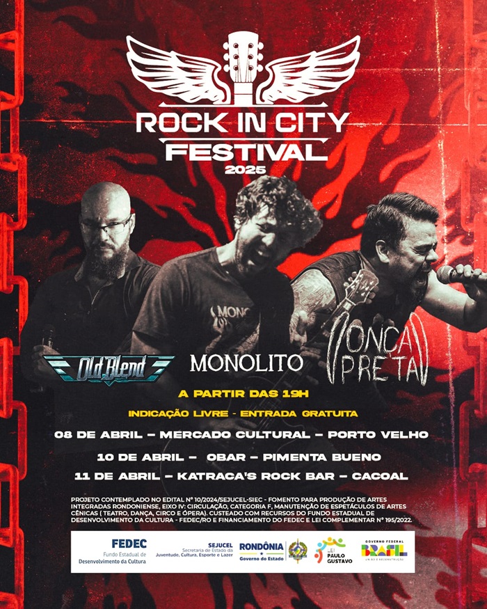 O Rock in City Festival vai agitar o cenário musical de Rondônia e proporcionar uma experiência inesquecível para os amantes do rock! Nesta edição, o festival percorrerá três cidades, reunindo grandes bandas em um evento gratuito e imperdível.