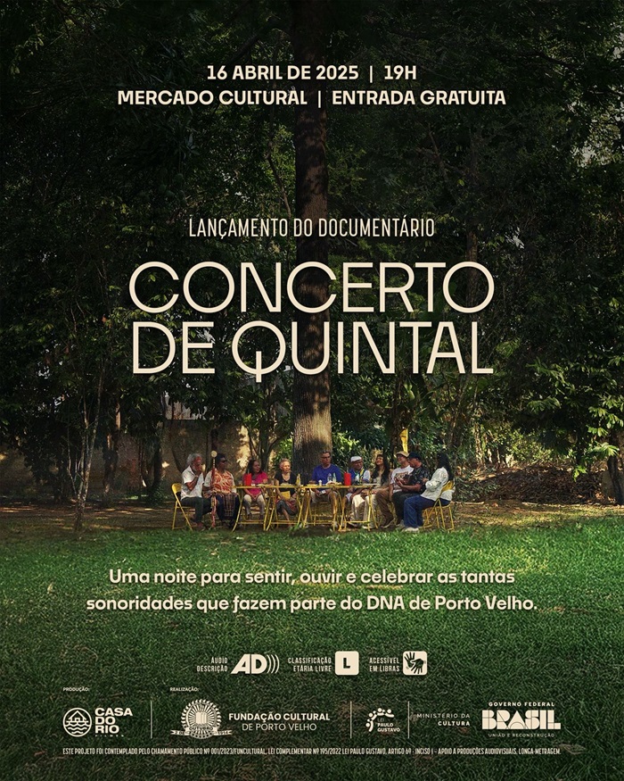 O documentário Concerto de Quintal terá sua estreia aberta ao público, de forma gratuita, no dia 16 de abril, no Mercado Cultural de Porto Velho. O longa-metragem, produzido pela Casa do Rio Filmes, é resultado de pesquisa e celebra a história musical porto-velhense ao reunir artistas de diferentes gerações para discutir influências, misturas e transformações ao longo do tempo.