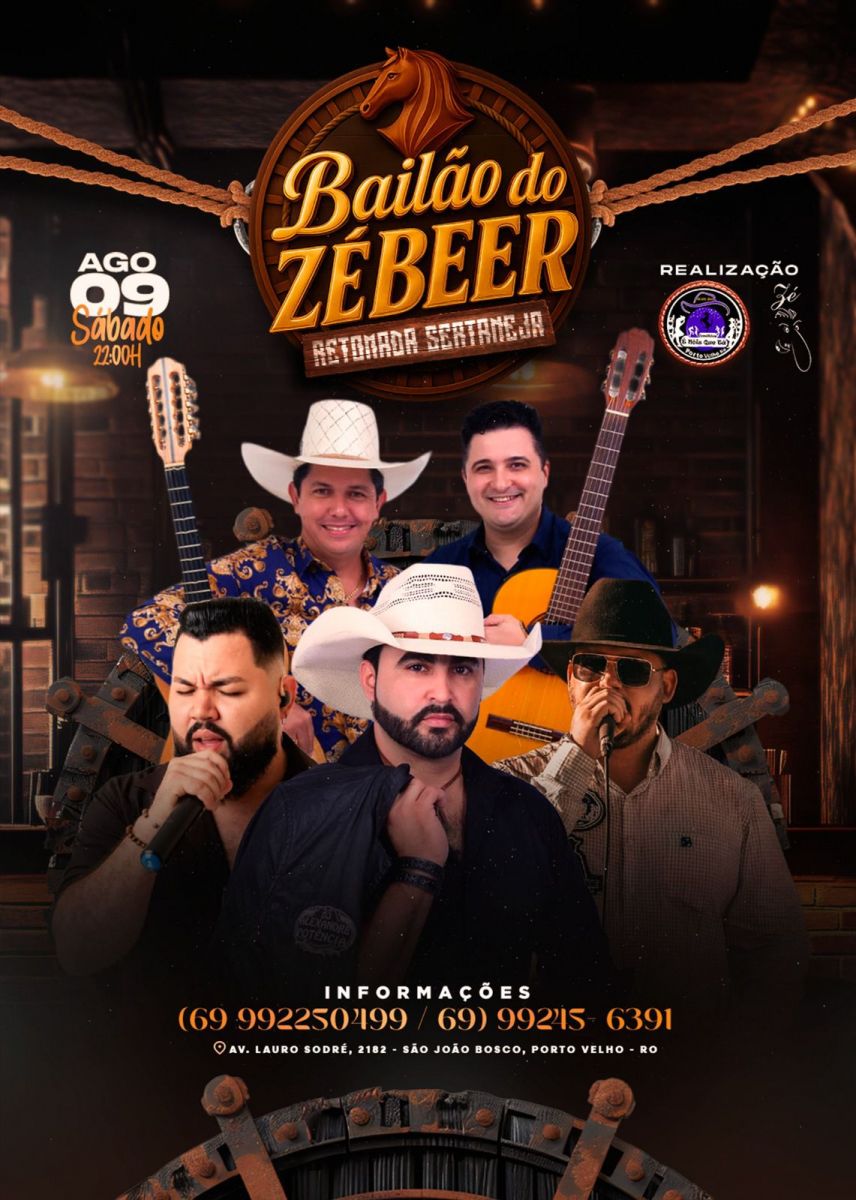 No dia 23 de agosto, a partir das 22h, tem Bailão do ZeBeer – Retomada Sertaneja em Porto Velho-RO!