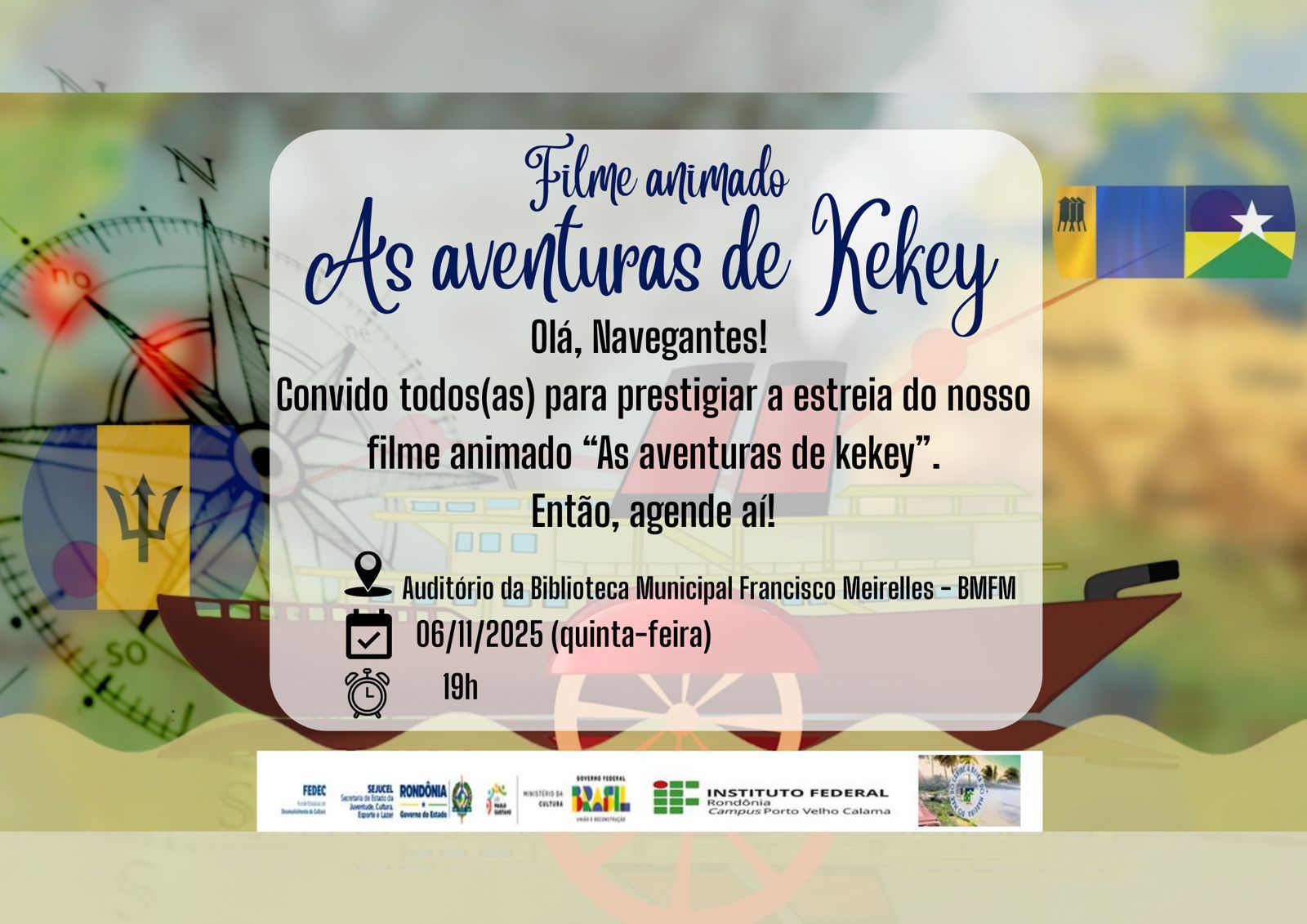 Na Amazônia, entre rios e memórias, nasce uma história que celebra a ancestralidade, a força da natureza e o poder da arte como instrumento de educação e pertencimento. 'As Aventuras de Kekey' é uma animação inédita inspirada no livro infantojuvenil 'Do Mar do Caribe à Beira do Madeira: a travessia de uma família de Barbados para o Brasil', de autoria de Cledenice Blackman. Pesquisadora, escritora e bibliotecária do Instituto Federal de Educação, Ciência e Tecnologia de Rondônia (IFRO), Campus Porto Velho Calama, ela teve sua obra literária premiada nacionalmente com o Prêmio Erê Dendê de Afroliteratura Infantojuvenil (2025). O concurso foi promovido pelo Ministério da Igualdade Racial (MIR) e pela Universidade Federal do Recôncavo da Bahia (UFRB).