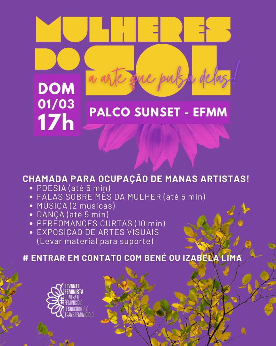 O Ponto de Cultura Feira do Sol, em parceria com o Levante Feminista do Estado de Rondônia prepara um evento especial para abrir o mês de março com arte, encontro e muita inspiração!
