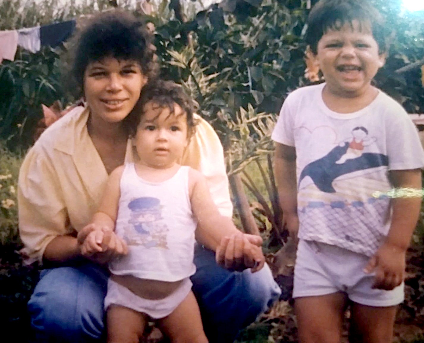 FOTO: Mirian e os filhos Mina e Ícaro, 1987 / Reprodução de acervo pessoal