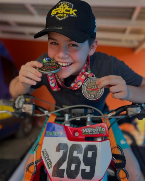 Na sua categoria, Erick foi campeão estadual nos anos de 2022, 2023 e 2024. Participando de campeonatos nacionais como o Arena Cross e provas oficiais da CBM – Confederação Brasileira de Motociclismo, o aguerrido garoto já figura entre as grandes promessas do esporte no Brasil. Segundo Vinicius Magalhães, pai e treinador, a dedicação e a coragem do filho são diferenciais. 'Ele tem um talento natural para as pistas, mas o que impressiona mesmo é a disciplina. Está sempre buscando melhorar, respeitando os limites e aprendendo com cada corrida', destacou.