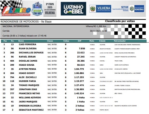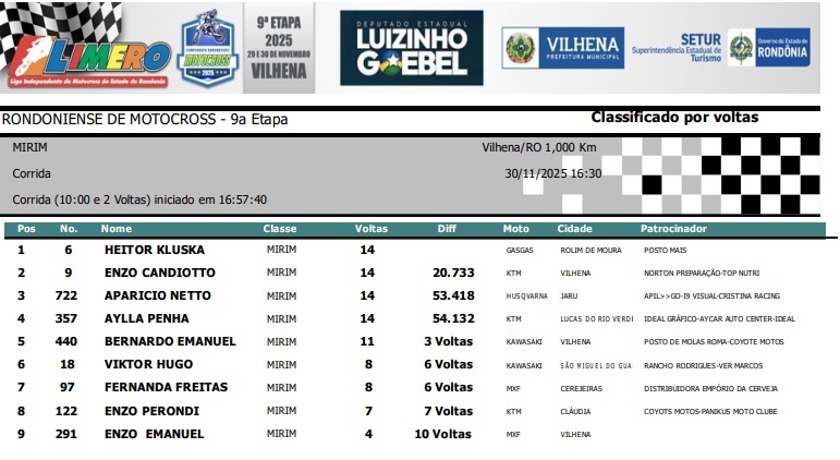 O município de Vilhena recebeu neste último final de semana a penúltima etapa do Estadual do Motocross, nos dias (29) e (30), a etapa decisiva que decidirá os melhores pilotos deste ano de 2025 no rank.