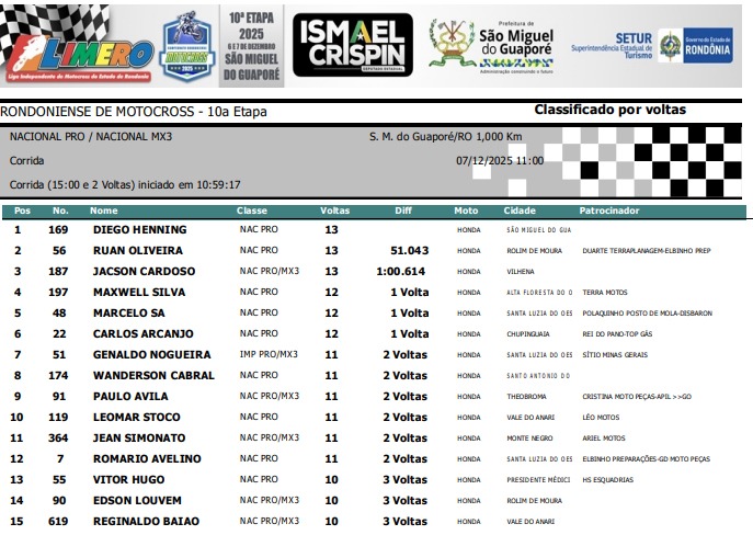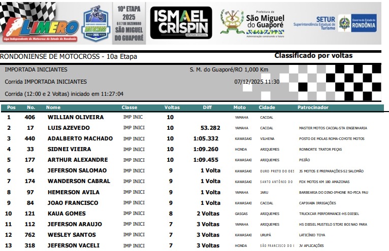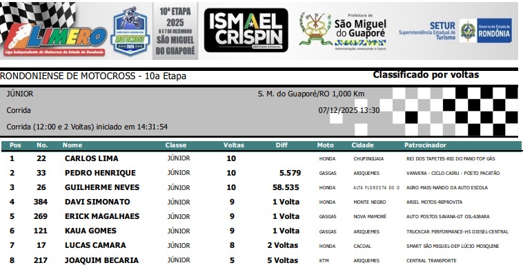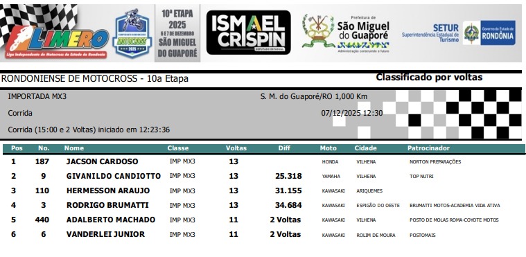 A cidade de São Miguel do Guaporé recebeu, no último fim de semana, a super final do Campeonato Rondoniense de Motocross 2025. A decisão aconteceu nos últimos dias (6) e (7), na rua Sebastião Martins Lima, ao fundo do Pereira Latarias, próximo à BR-429, e movimentou o município com dois dias de muita disputa e ronco de motores.