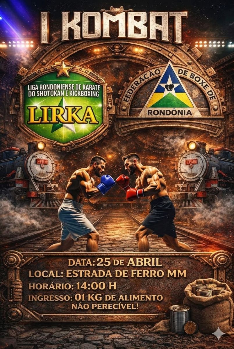 Um evento inédito promete unir esporte, cultura e história em Porto Velho. O I Kombat – Estrada de Ferro Madeira-Mamoré pretende transformar o complexo da Estrada de Ferro Madeira-Mamoré em palco de combates de boxe e kickboxing, reunindo atletas amadores de todo o estado.