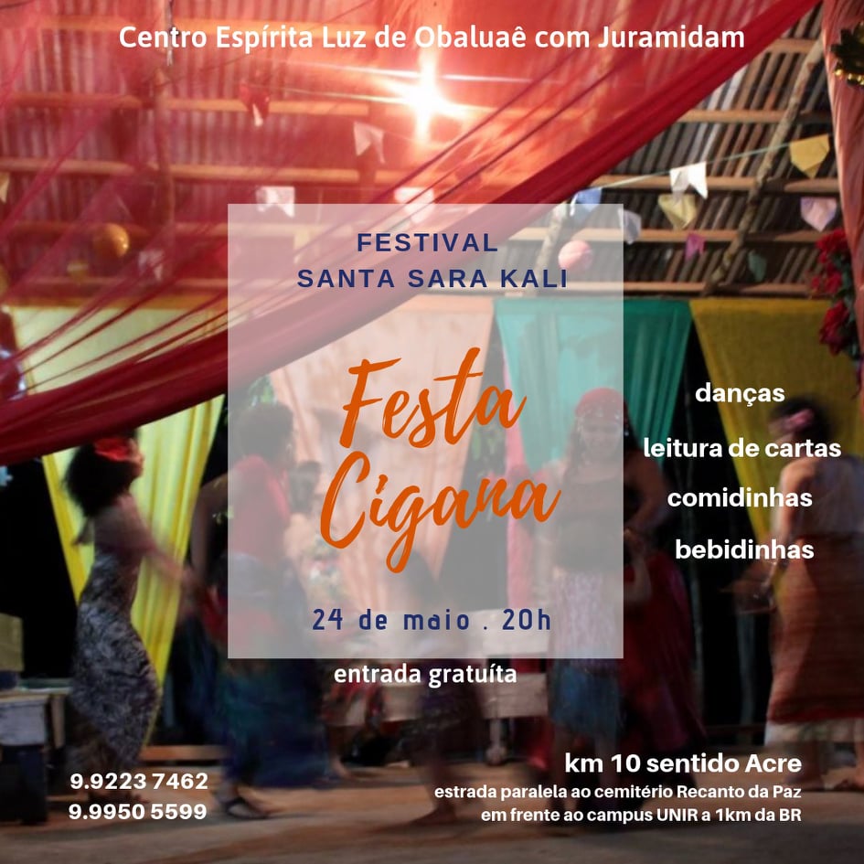 Nesta sexta-feira (24) acontece em Porto Velho o Festival Santa Sara Kali, em comemoração ao Dia Nacional do Cigano, o festejo é comemorado com orações, músicas, danças e outras formas culturais desse povo. Além de venda de artesanato e de comidas típicas e leituras de cartas.