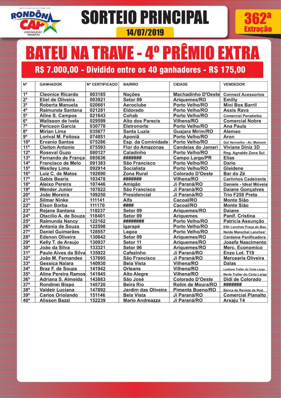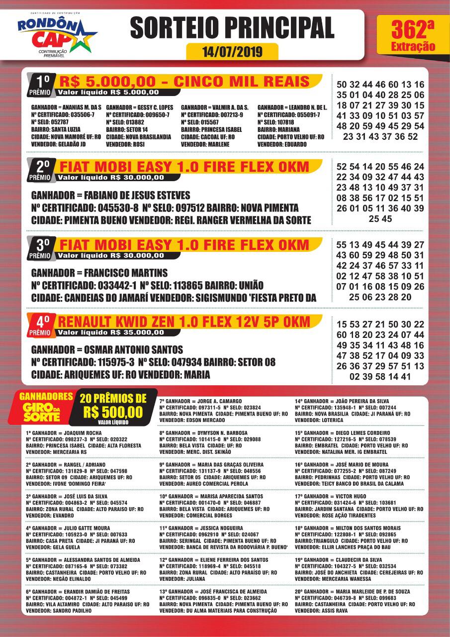Os prêmios saíram para as cidades de: Porto Velho, Nova Mamoré, Cacoal, Nova Brasilândia, Pimenta Bueno, Candeias do Jamari, Alta Floresta do Oeste, Alto Paraíso, Ji Paraná e Cerejeiras;
