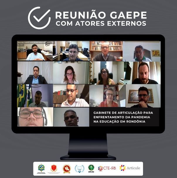 O cenário da educação em Rondônia foi o assunto principal da atividade online envolvendo representantes das instituições que integram o Gabinete de Articulação para Enfrentamento da Pandemia na Educação em Rondônia (Gaepe-RO), composto pelo Tribunal de Contas (TCE-RO), Ministérios Públicos de Contas (MPC-RO) e Estadual (MP-RO), Tribunal de Justiça (TJ-RO), da Defensoria Pública do Estado (DPE-RO), Comitê Técnico da Educação do Instituto Rui Barbosa (CTE-IRB) e Instituto Articule, em diálogo com os representantes da Seduc, da União dos Dirigentes Municipais de Educação (Undime), do Conselho Estadual da Educação e da União dos Conselhos Municipais de Educação (Uncme).