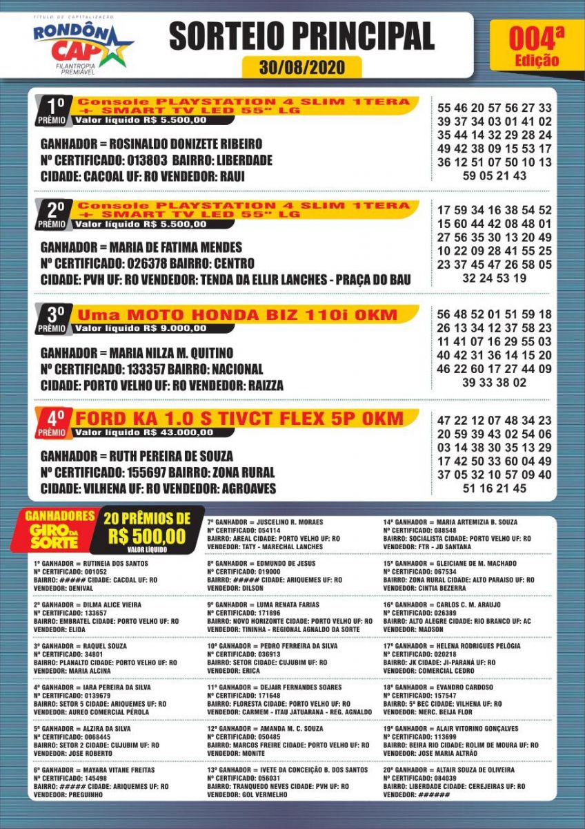 RONDONCAP: Adquira seu certificado e confira quem foram os sortudos de domingo (30)