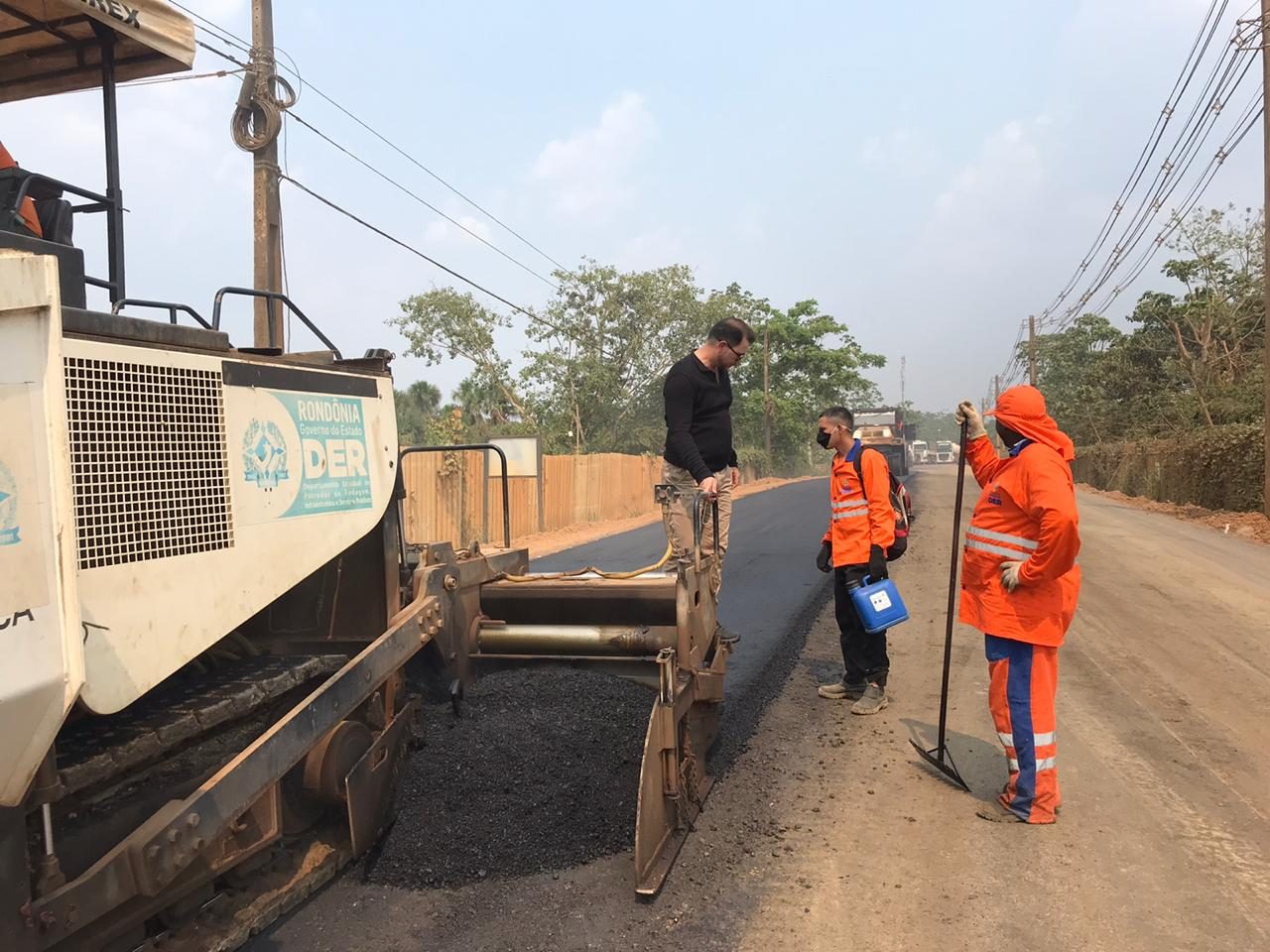 O diretor-geral do DER, Elias Rezende, esteve nesta semana conferindo in loco os trabalhos executados pelas equipes da Usina de Asfalto e da 13ª Residência Regional em Porto Velho. “Esse primeiro quilômetro finalizado é motivo de comemoração de quem está à frente deste trabalho árduo, como também para os moradores do entorno, que todos os anos sofriam com poeira em suas residências. Para finalizar este primeiro quilômetro, foram executadas várias etapas, como a elevação da pista com pedras de alta resistência, além da preparação da base para receber o asfalto usinado pelas equipes de trabalho do DER. É um serviço grandioso que está sendo executado com qualidade e economia, conforme determina o governador, coronel Marcos Rocha. Os trabalhos seguem até os cinco quilômetros de asfaltamento”, explica o diretor-geral.