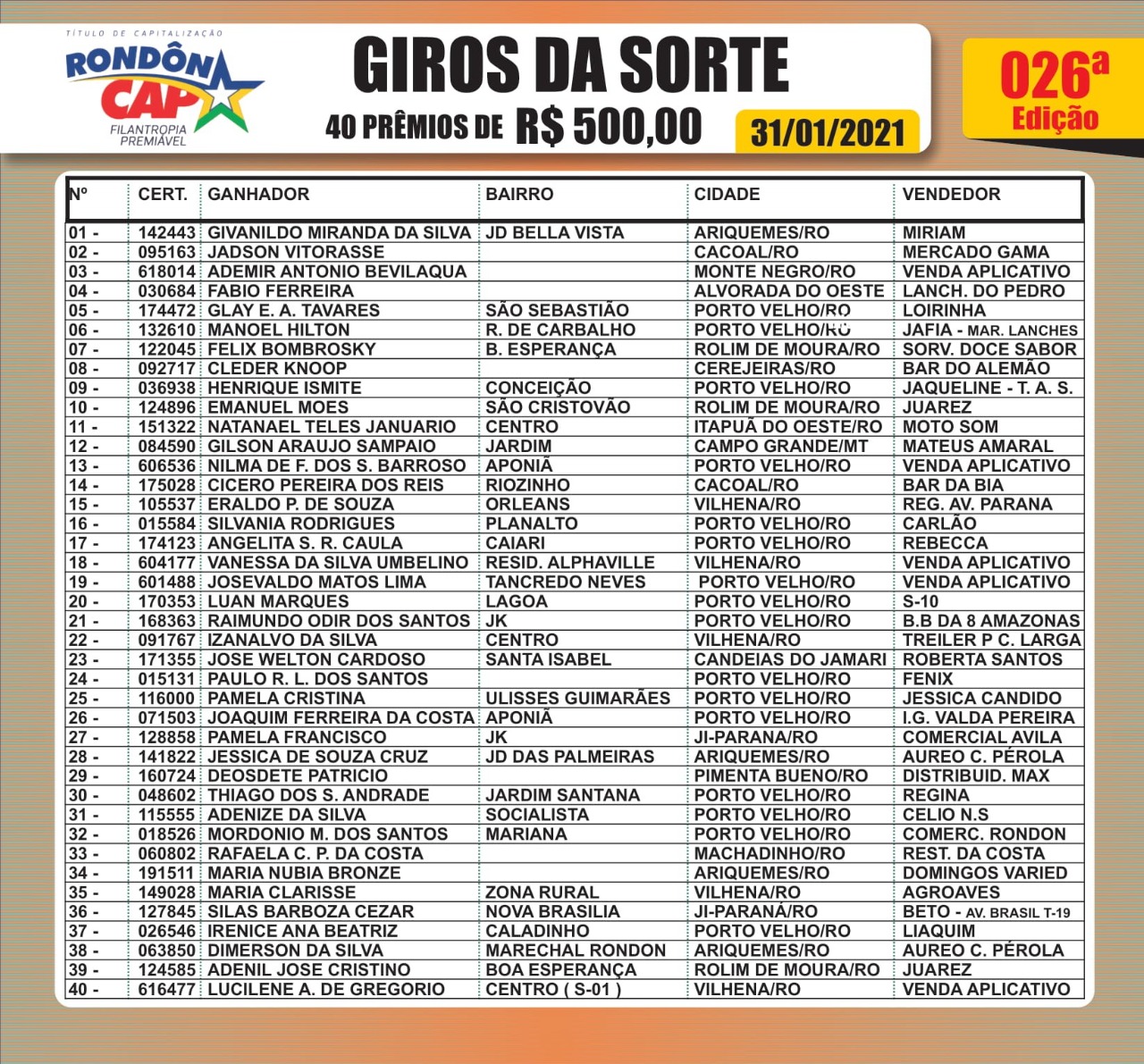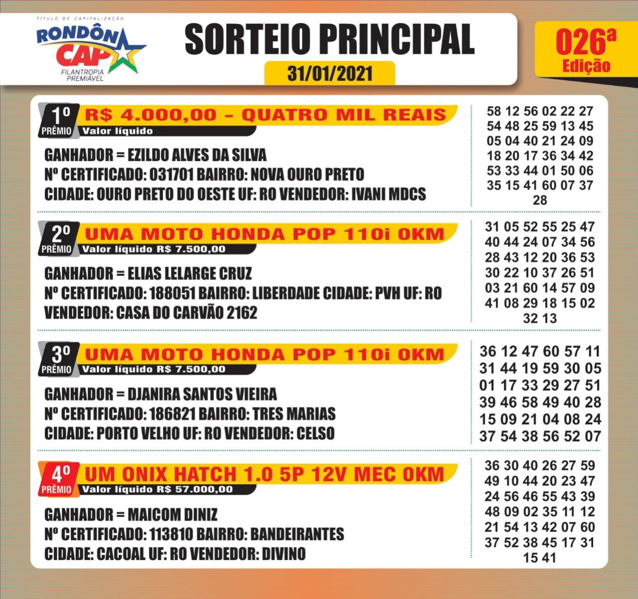 O Rondoncap em 09 anos já fez mais de 11 mil ganhadores em vários municípios de Rondônia e no sorteio de ontem não foi diferente.
