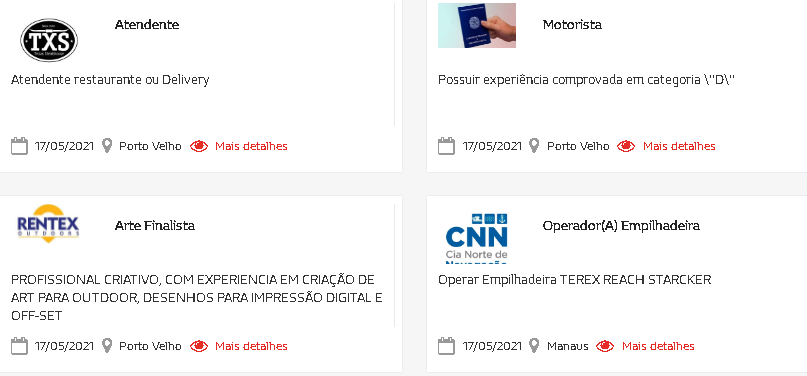 Nesta terça-feira(18), há oportunidades de emprego para garçom, técnico administrativo, operador de empilhadeira entre outras