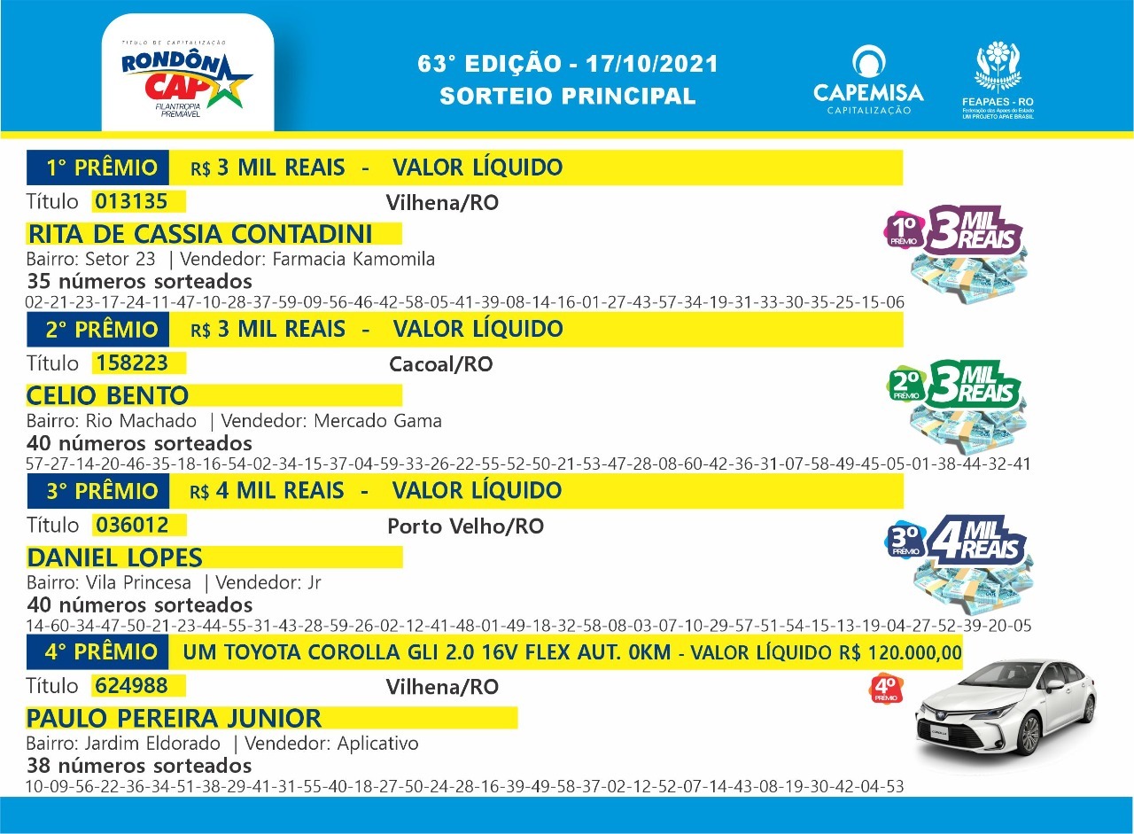 Confira agora os ganhadores do sorteio principal e do giro da sorte:
