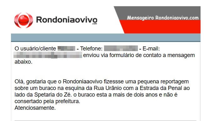 Desta vez foram moradores do conjunto Marechal Rondon que solicitaram a reportagem, onde uma cratera no asfalto já fez aniversário de dois anos. A cratera que fica localizada na esquina da Rua Uranio com a Estrada da Penal faz com que até veículos de grande porte, raspem o assoalho no chão. A comunidade pede com urgência o reparo no local.