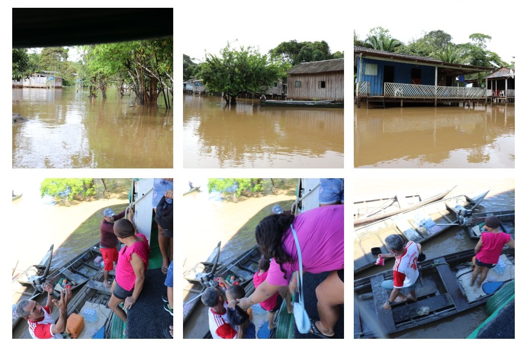 A equipe psicossocial aproveitou para fazer algumas visitas. De voadeira, foram até as casas dos ribeirinhos divulgar programas do Tribunal de Justiça, direitos e fazer acolhimento de situações geradas pela enchente.