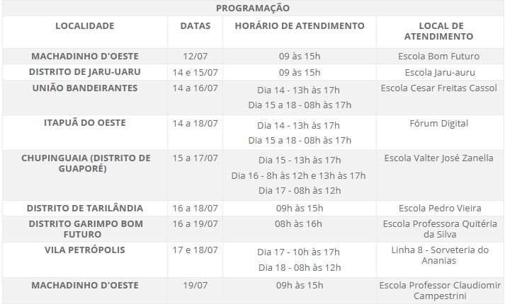 Confira a programação de atendimentos da semana (12 a 20 de junho):