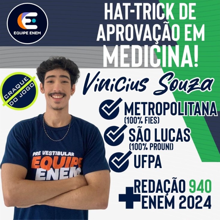 “Quando se estuda com o material especializado exclusivo, o aluno se prepara com o que há de melhor e fica fácil não só superar dificuldades que possui em alguma disciplina, mas reforçar conhecimentos que serão necessários ou na faculdade ou na segunda fase, se o aluno estiver querendo enfrentar novos desafios como prestar em faculdades de renome nacional. Assim, fazer um bom resultado no ENEM vira consequência”, comenta o Professor de matemática do Equipe Enem, Neizinho, uma das estrelas do grupo.