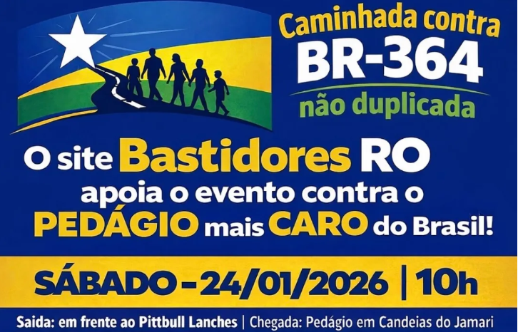 Já estamos falando em caminhada, a moda chegou rápido por aqui. Uma mobilização está ocorrendo na capital contra os pedágios cobrados na BR 364. Para isso, está programada uma caminhada de 18 Km, neste sábado (24), a partir das 10h, com concentração em frente ao Lanche Pitbull, com destino à Candeias do Jamari. A ação pode até ser válida, mas essa história do pedágio na BR 364 não começou agora, foi implementado com a concessão e a população está lamentando. No entanto, o que precisamos nos perguntar é: onde estava a bancada federal de Rondônia quando se aventou a possibilidade de concessão da BR 364? Dormiram no ponto, como fizeram com a Ceron, e agora estão chorando o leite derramado. Amigos, é tarde para isso, mas é um alerta para sabermos em quem devemos votar!
