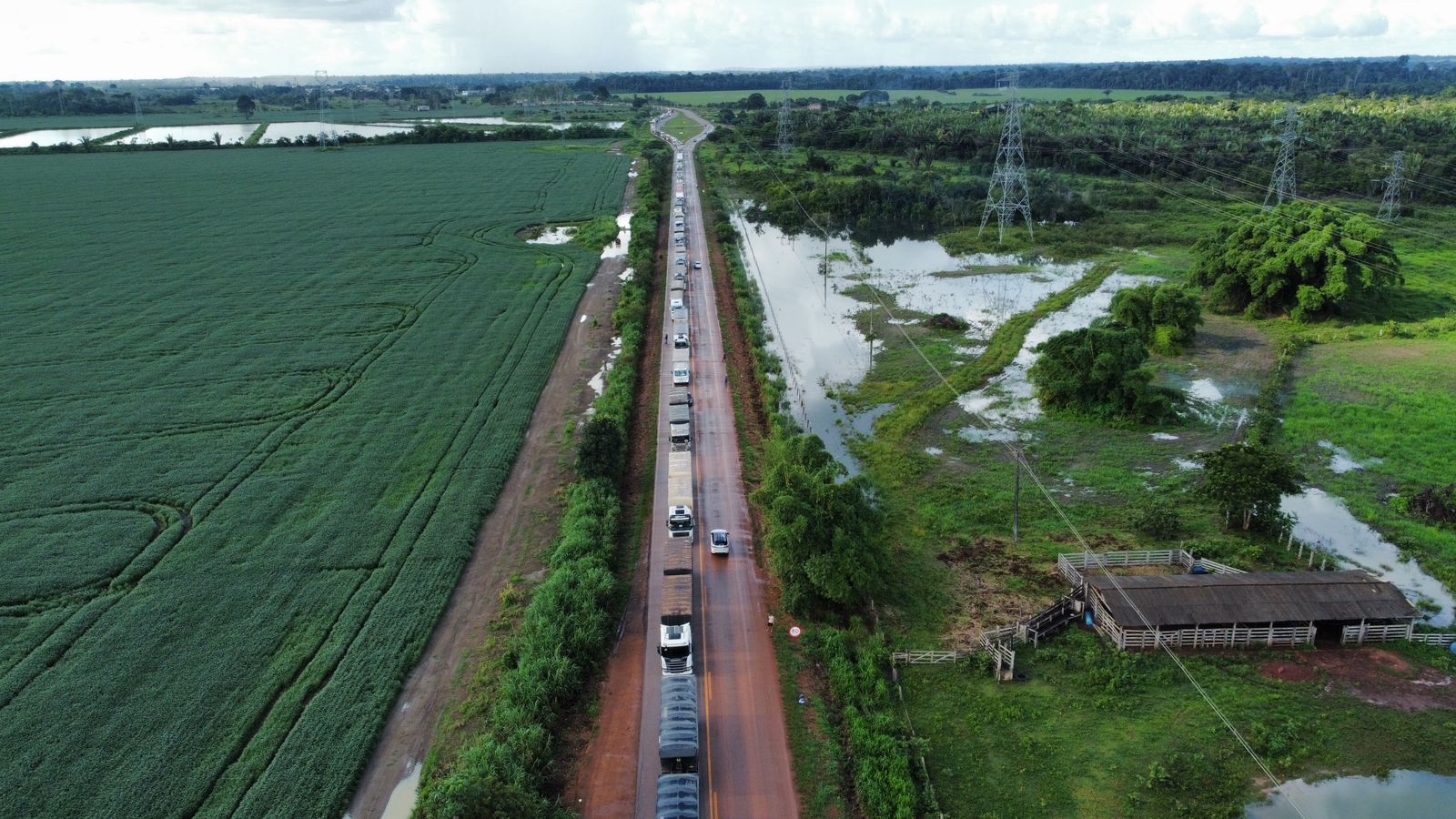 O trecho da BR-364, km 563, está com tráfego bloqueado nesta quinta-feira (29). Manifestantes protestam contra o pedágio e pedem revogação do plano de desocupação da Estação Ecológica Soldado da Borracha, nas proximidades de Cujubim. Produtores rurais ameaçam interdição total da rodovia caso não haja avanço nas negociações.