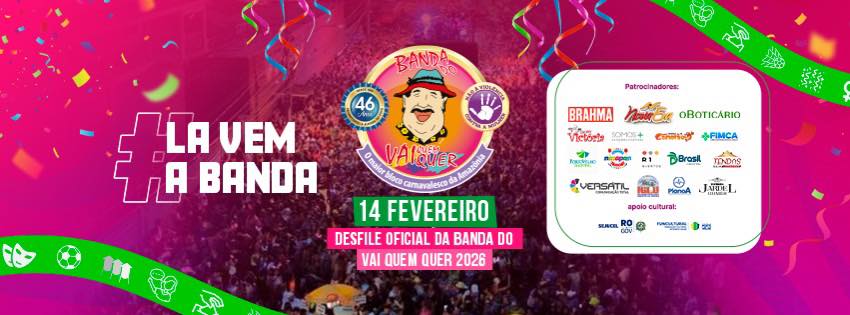 E neste sábado (14), o mais tradicional bloco de rua de Rondônia, ‘A Banda do Vai Quem Quer’ vai para a avenida, fazer o desfile que leva famílias inteiras a festejar o Carnaval. Vale à pena participar da festa que, a cada ano, se torna ainda mais grandiosa. Vá, divirta-se durante todos esses dias em que a alegria e o respeito devem prevalecer. Lembre-se que não é não e se beber não dirija! Outra coisa, se puder doe sangue na Fhemeron, pois, nessa época do ano, a demanda aumenta e o número de doadores diminui! Cada bolsa de sangue, salva quatro vidas e além disso, amanhã você pode precisar de doação de sangue.
