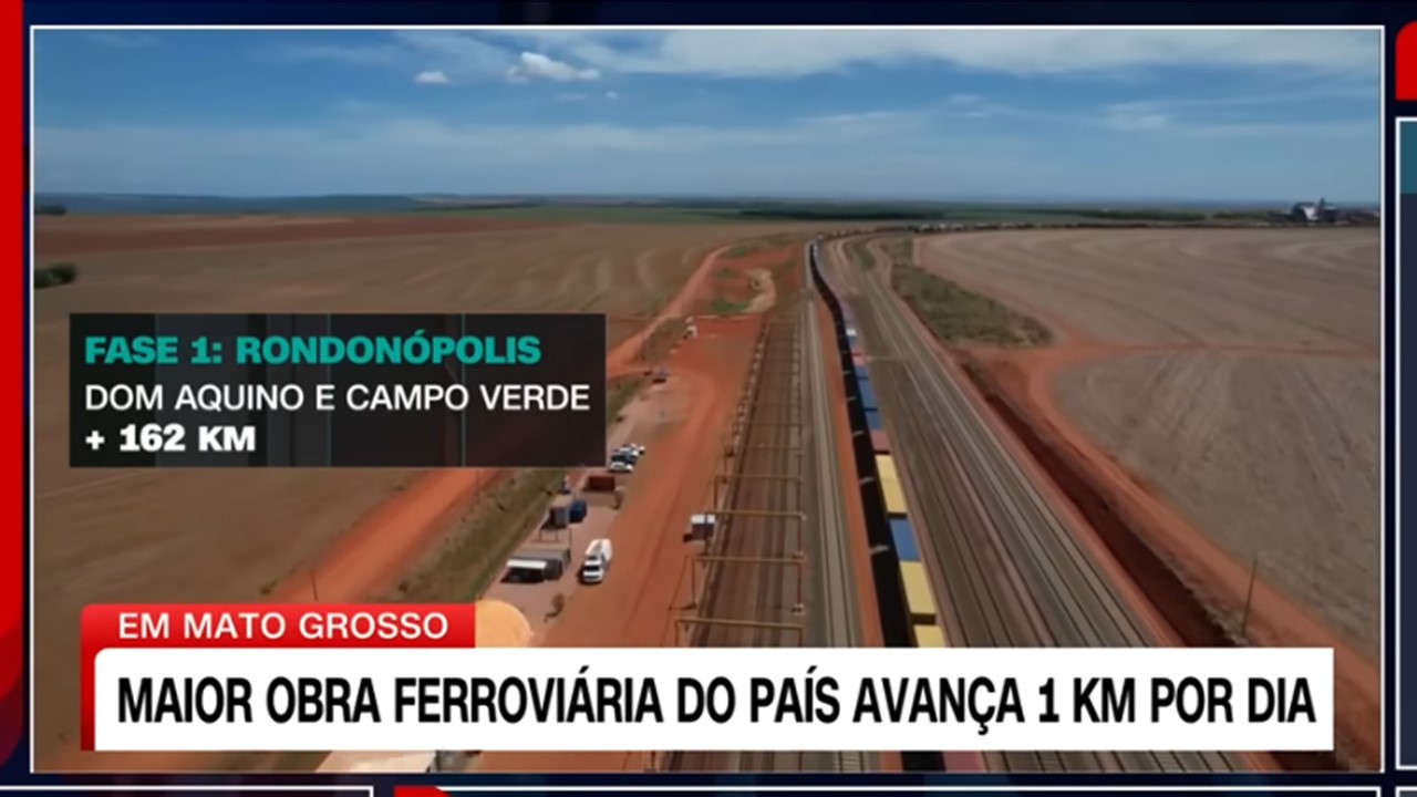 A Ferrovia Estadual de Mato Grosso (FMT), também chamada de Ferrovia Senador Vicente Emílio Vuolo, já ultrapassa 73% de execução na primeira fase e avança em ritmo acelerado, com média de 1 quilômetro de trilhos por dia. Considerada a maior obra ferroviária em andamento no Brasil, a previsão é de que comece a operar no segundo semestre de 2026, impulsionando o escoamento da produção agrícola do estado.