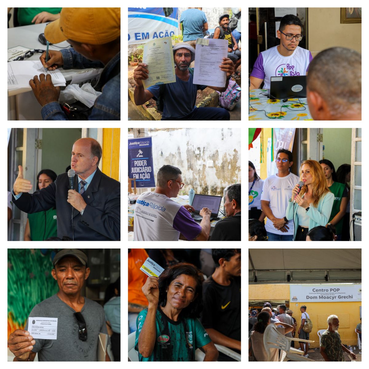A colagem de nove fotos coloridas mostra ação do pop rua jud em Porto Velho