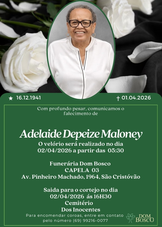O velório está ocorrendo na Funerária Dom Bosco e o cortejo fúnebre sairá às 16h30, em direção ao Cemitério dos Inocentes
