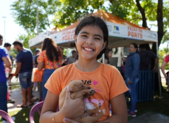 Isabelly Hadassa, de 10 anos, segurava o filhote com cuidado e atenção ao animal que acabava de adotar. Ela não escondia a emoção ao realizar um desejo antigo. “Eu pedi muito para os meus pais deixarem eu ter um cachorro. Quando cheguei aqui, escolhi ele”, contou. O novo integrante da família já tem nome: Churrasco.