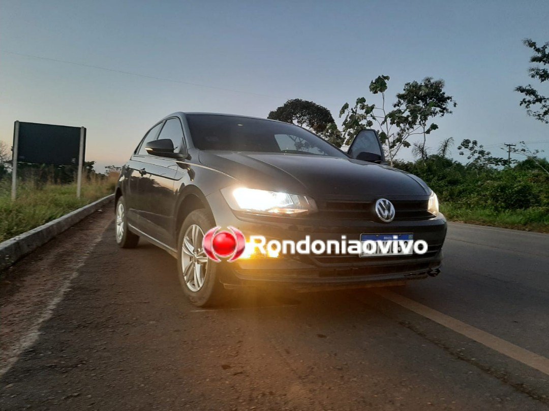 O carro Polo roubado pertence a um motorista de aplicativo. A Polícia Militar foi informada do crime e conseguiu interceptar os ladrões na BR-425 em Nova Mamoré.