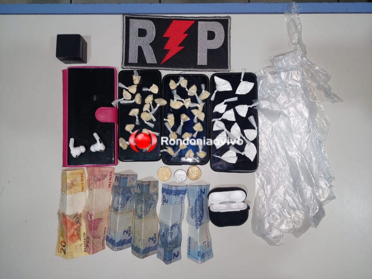 No local, os policiais apreenderam mais de 40 porções de cocaína e crack, dinheiro trocado, materiais usados para embalar droga, celulares e outros objetos de procedência duvidosa.