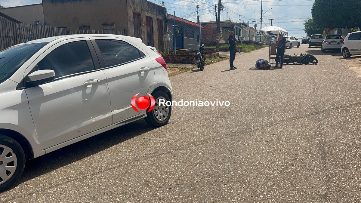 Na batida lateral entre a moto e o carro, as duas vítimas caíram ao chão e ficaram feridas, sendo que a situação mais delicada era da condutora da da moto, que permaneceu ao solo.