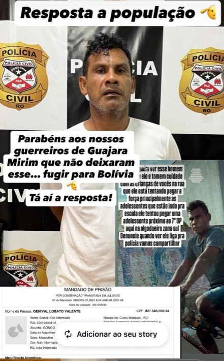 Criminoso tinha sido visto em Porto Velho fugindo de bicicleta