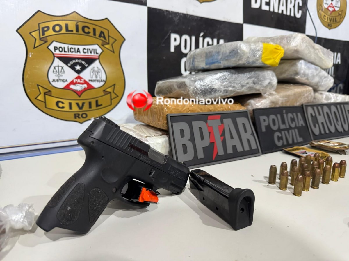 Mais de R$ 165 mil, várias porções e tabletes de drogas, veículos usados no tráfico, arma de fogo e munições foram apreendidos.