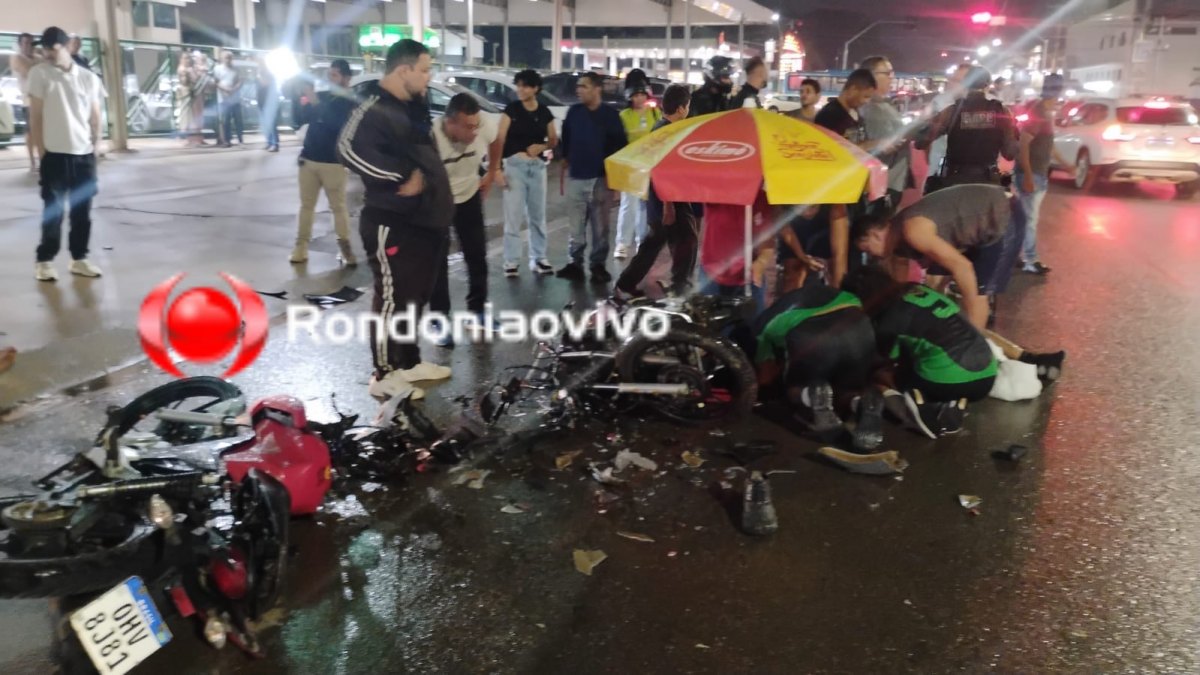 O grave acidente envolvendo três motos e um carro que deixou três pessoas seriamente feridas aconteceu na noite deste sábado (25) na Avenida Rio de Janeiro com Rua Eduardo Lima e Silva, em frente ao IG, na capital de Rondônia.