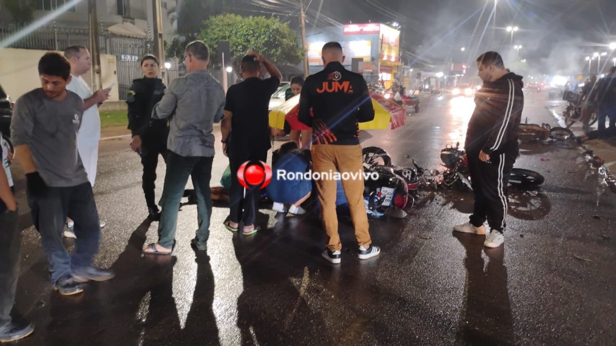 O Rondoniaovivo apurou que uma das motos bateu contra um carro de cor prata e depois da primeira vítima ao chão outras duas motos acabaram se envolvendo no acidente.