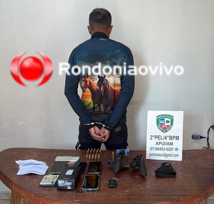 Jânio A. C., 44, preso com um revólver, uma pistola e  carro no município de Apuí (AM).
